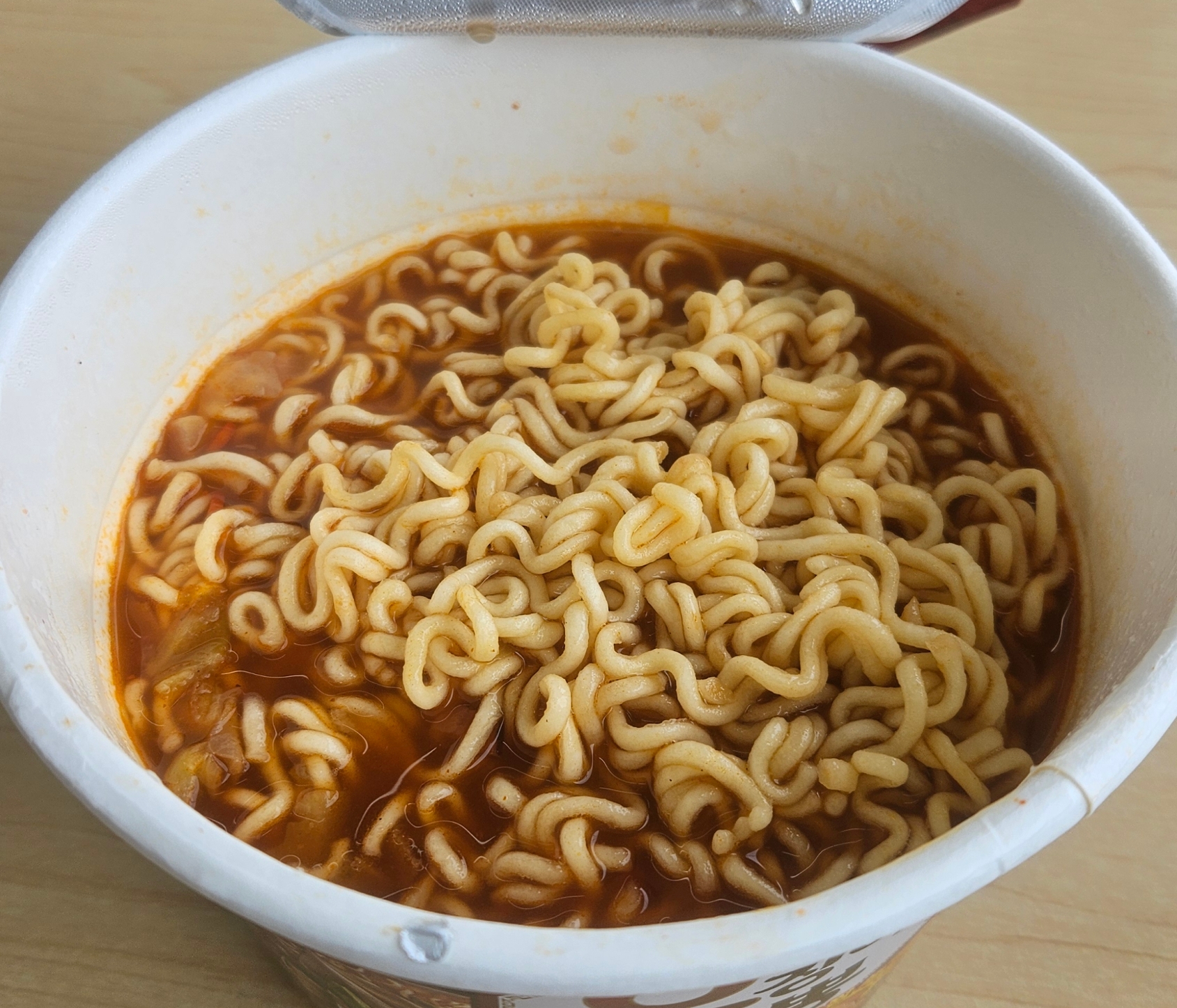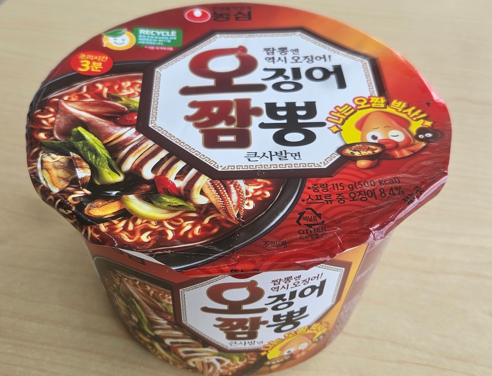 오늘 선택한 메뉴는 오징어짬뽕 큰 사발면으로, 얼큰하면서도 깊은 해물 맛이