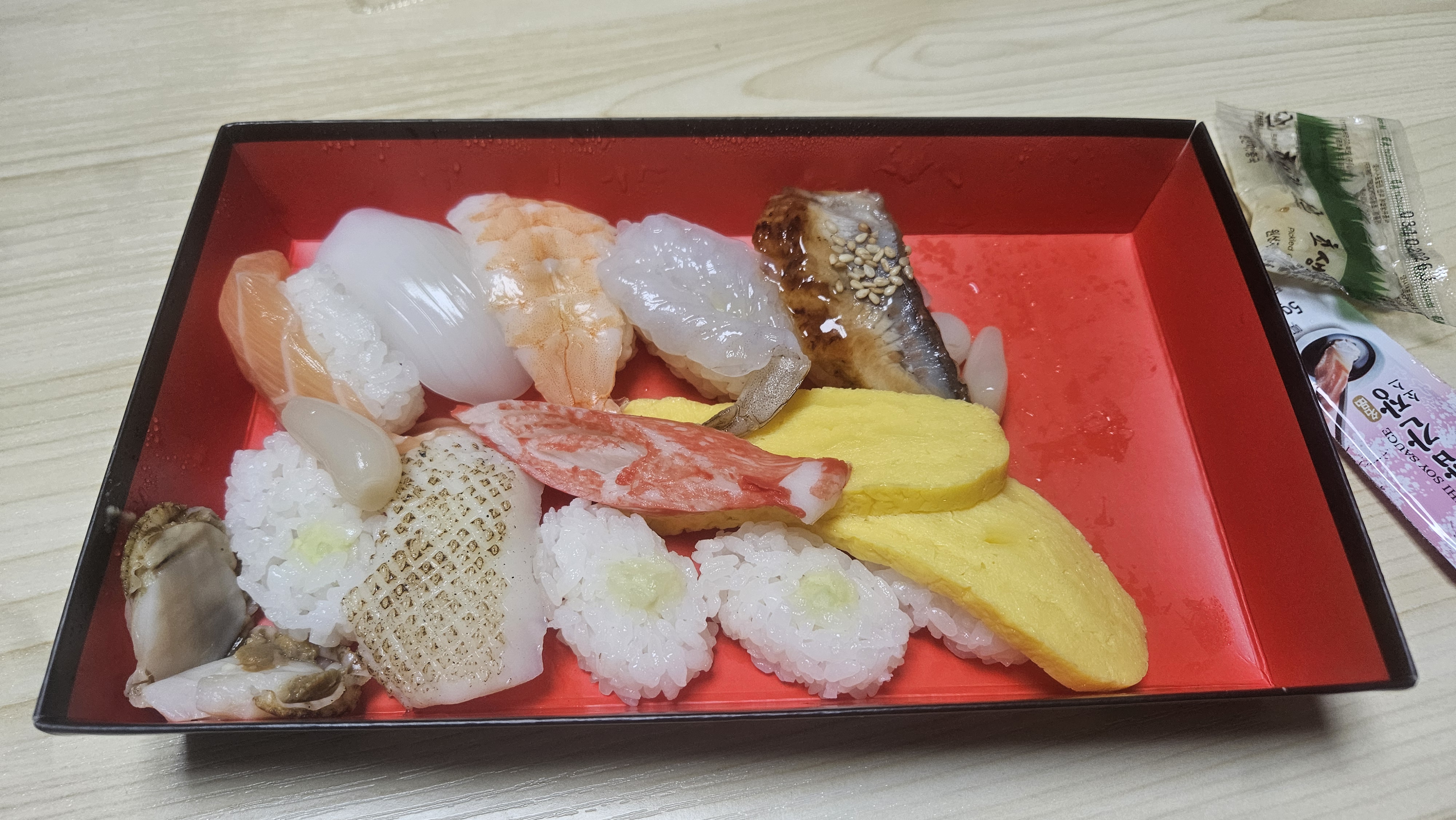 구입한 초밥은 스터디카페로 가져와서 공부 전에 간단히 저녁으로 먹었습니다.