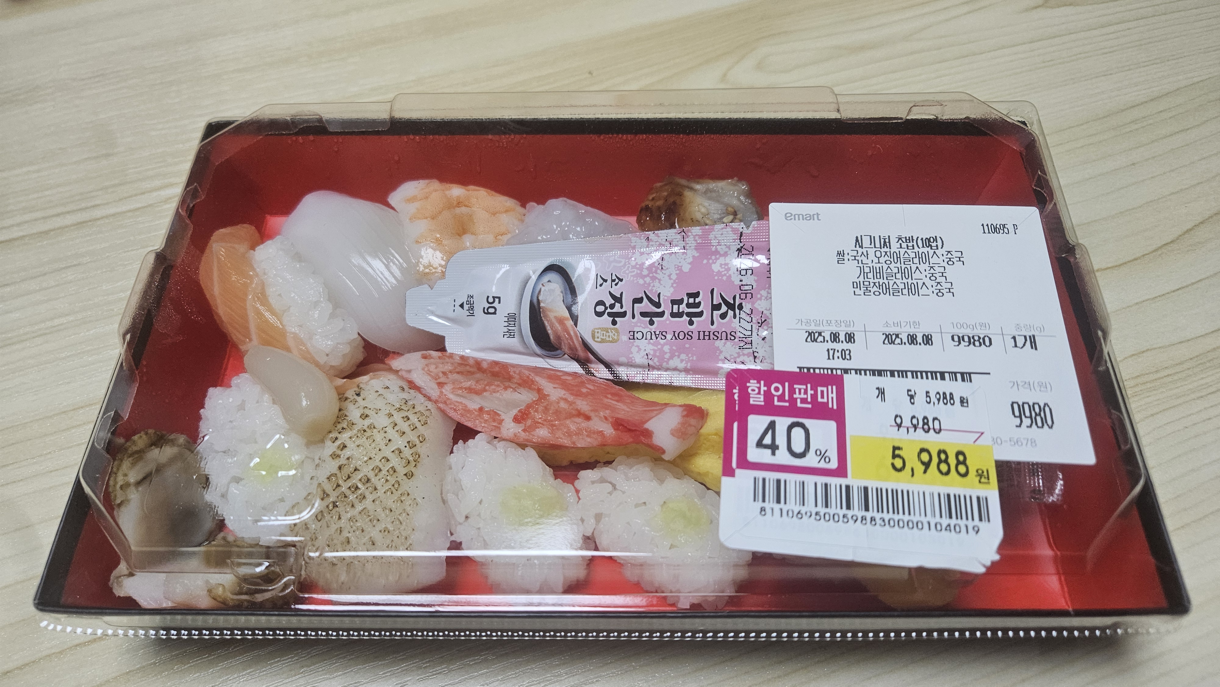 오늘 저녁은 구미 이마트에서 우연히 발견한 시그니처 초밥 세트를 선택했습니다.