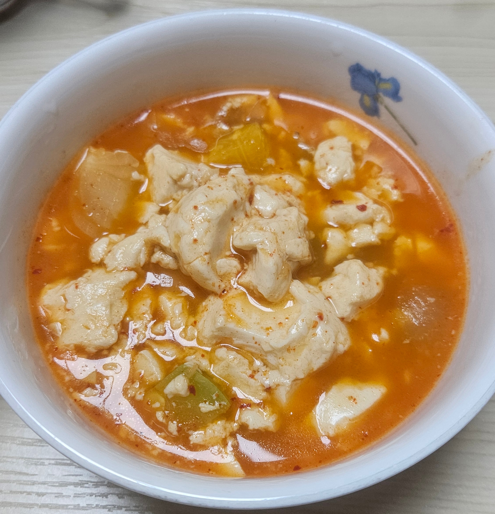 첫 번째로 나온 순두부찌개는 부드러운 두부와 깊게 우러난 국물 맛이 일품이었습니다.