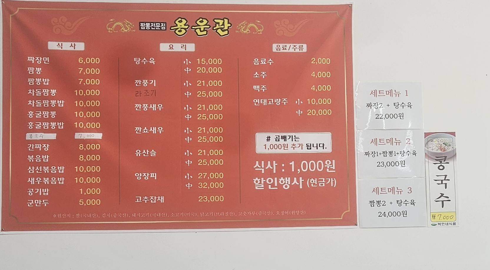 오늘은 경북 칠곡군 북삼읍에 위치한 중식당 '용운관'을 방문했습니다.