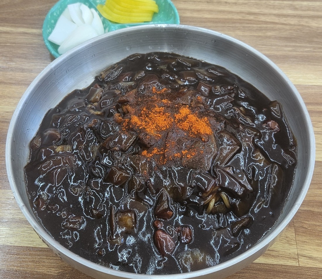 짜장면은 윤기가 흐르는 짜장 소스 위에 고춧가루가 약간 뿌려져 있어 매콤한 맛이 가미되어 있었고,