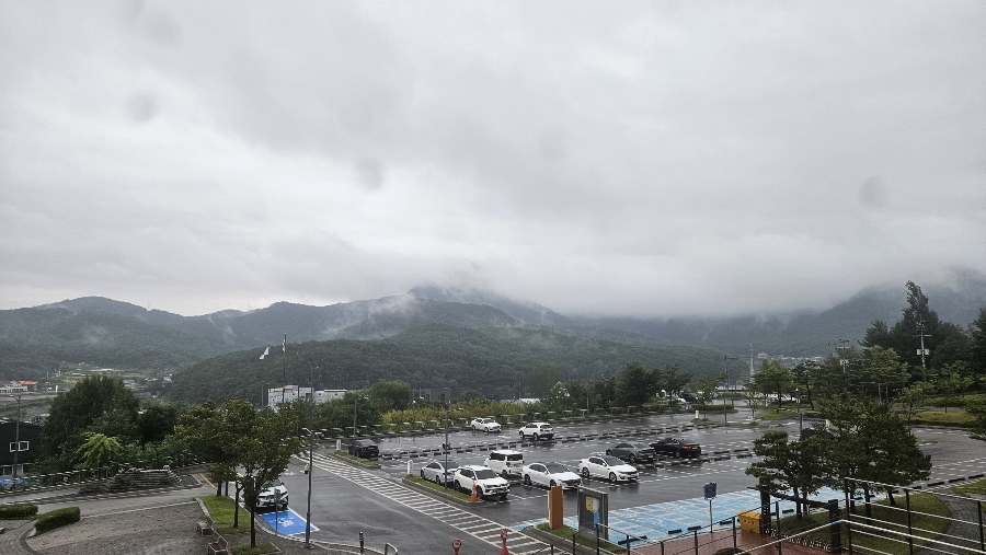 비 오는 날 창밖을 바라보면 평소와는 전혀 다른 풍경이 눈앞에 펼쳐집니다. 오늘처럼 주차장 너머로 산이 보이고, 그 산허리에 흘러내리는 구름과 옅은 안개가 겹겹이 쌓여 있는 장면은 흔히 볼 수 없는 특별한 모습입니다. 평소 맑은 날에는 선명하게 보이던 산 능선이 오늘은 흐릿하게 감춰져 있어 신비로운 분위기를 자아냅니다. 이런 풍경은 바쁘게 살아가는 일상 속에서 잠시 발걸음을 멈추고 자연이 전해주는 여유와 고요함을 느낄 수 있게 해 줍니다.