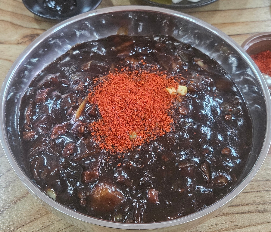 직접 만든 소스는 달콤하면서도 구수한 맛이 살아 있습니다. 양파가 주는 단맛, 고기의 고소함, 채소가 더해주는 식감이 어우러져 한 그릇만으로도 충분히 든든합니다. 또한 기호에 따라 고춧가루를 올리면 매콤함이 더해져 칼칼하면서도 진한 맛을 즐길 수 있습니다. 사진 속 짜장면처럼 붉은 고춧가루를 더하면 시각적인 포인트와 함께 색다른 풍미가 느껴집니다.