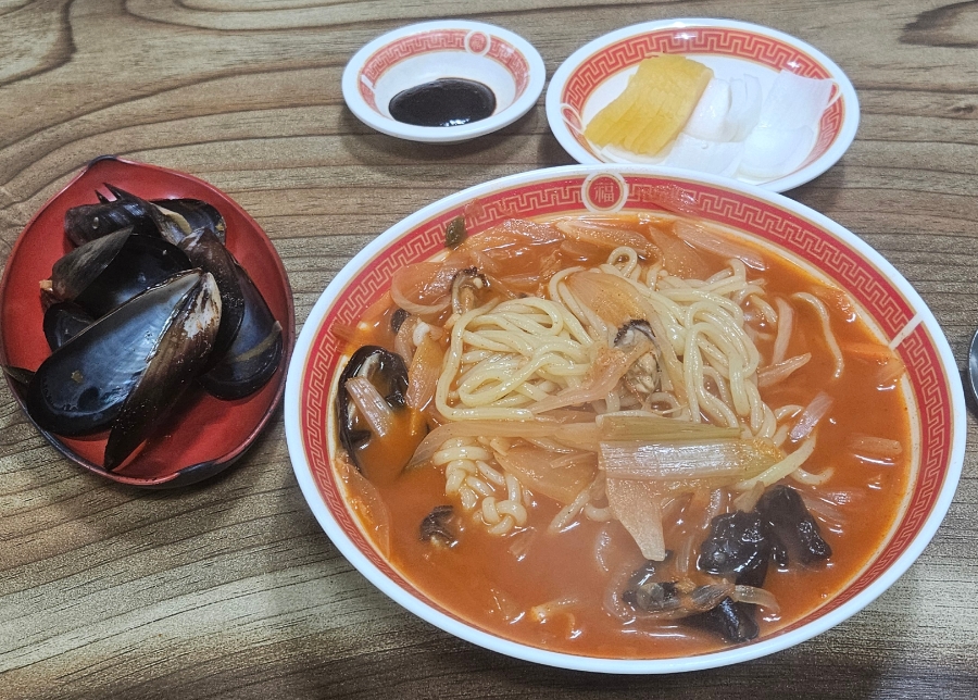 짬뽕을 먹을 때 함께 나오는 단무지와 양파는 단순한 곁들임이 아닙니다. 단무지는 매운 국물의 자극을 완화시켜 입안을 정리해 주고, 춘장에 찍어 먹는 양파는 느끼함을 줄여줍니다. 또한 따로 제공되는 홍합 껍데기를 담는 접시는 식사를 깔끔하게 마무리할 수 있도록 도와줍니다. 이런 작은 곁들임이 짬뽕의 풍미를 더욱 완성시켜 줍니다.