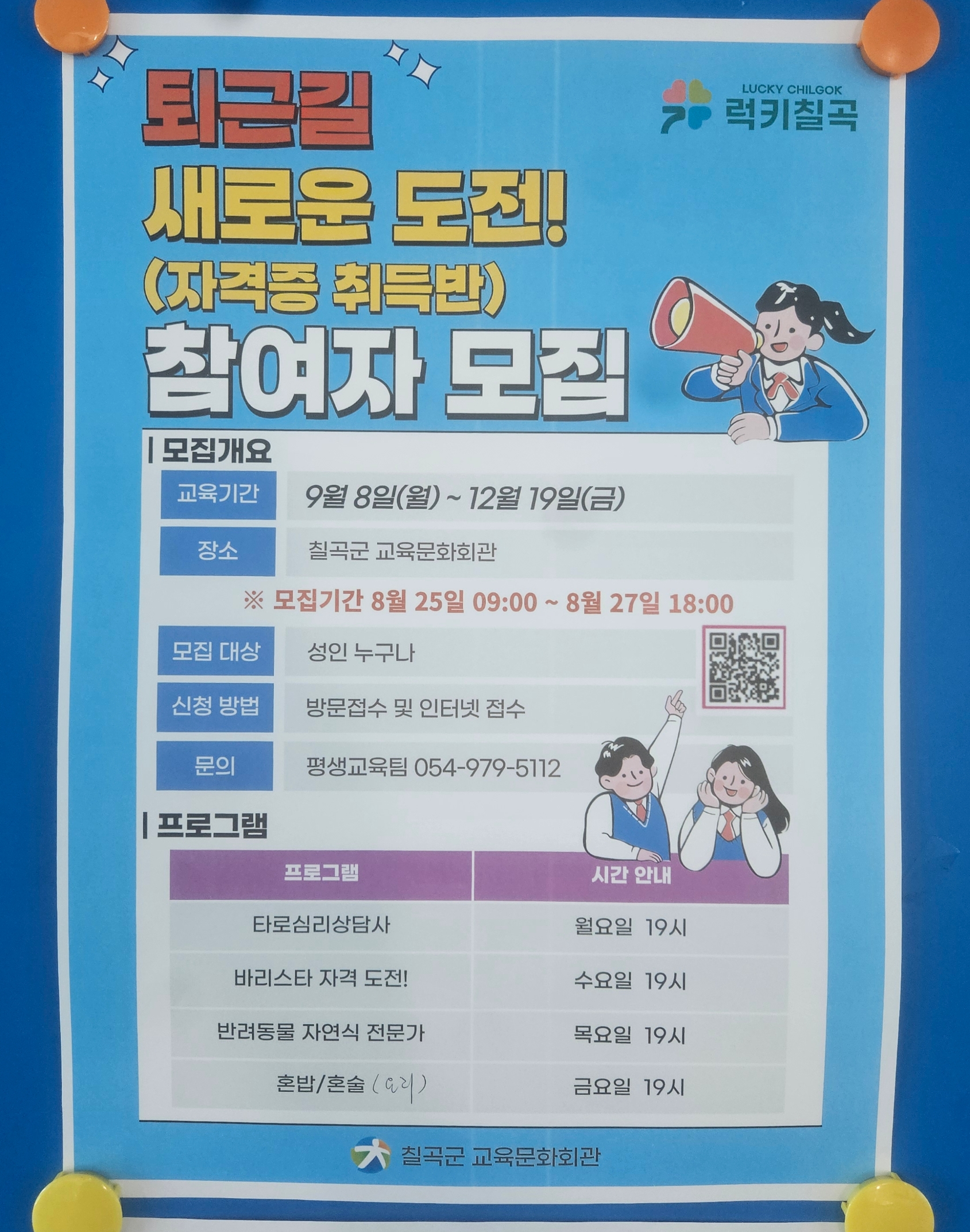 9월 8일(월)부터 12월 19일(금)까지 ‘자격증 취득반 프로그램’을 진행합니다.