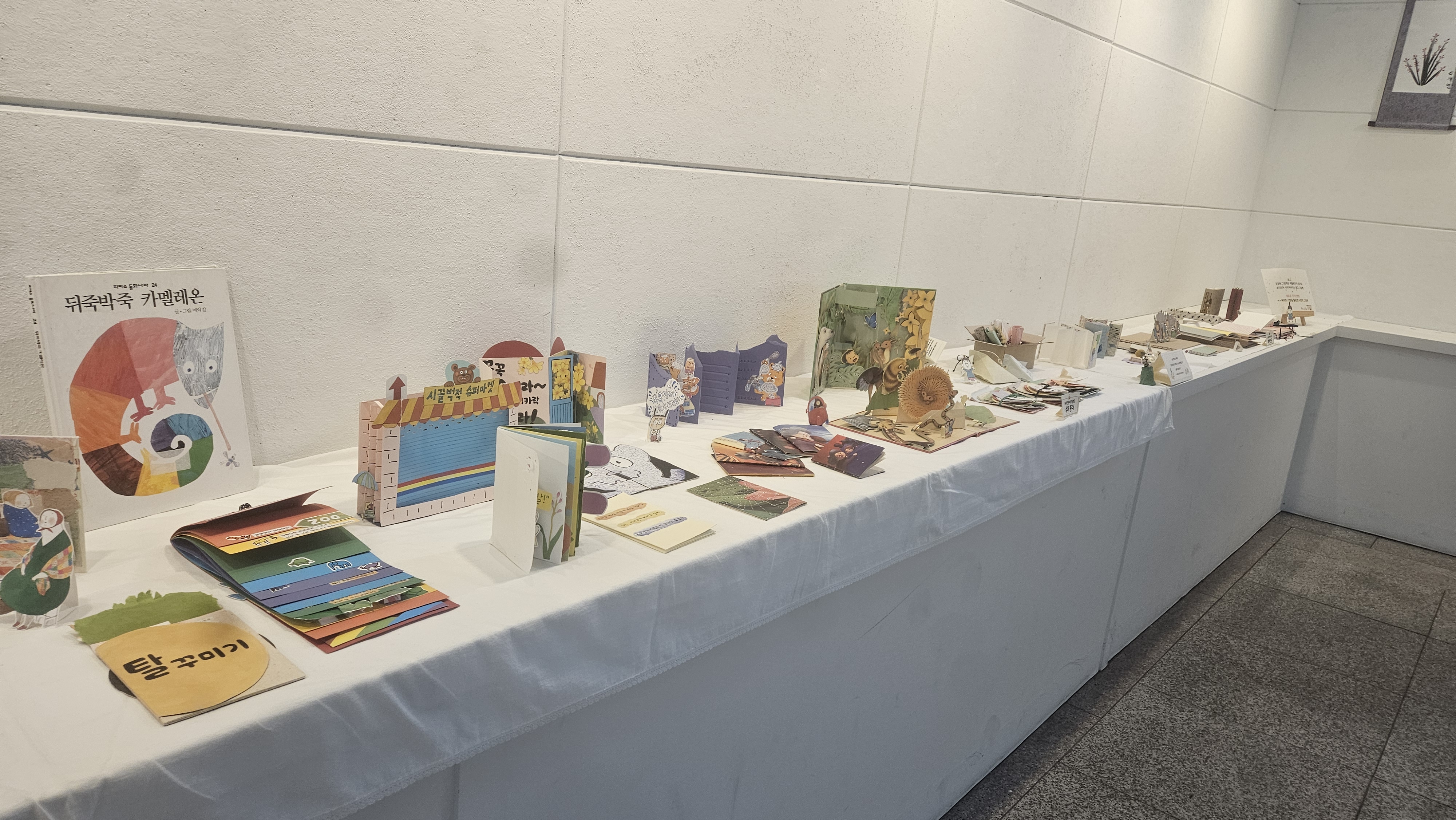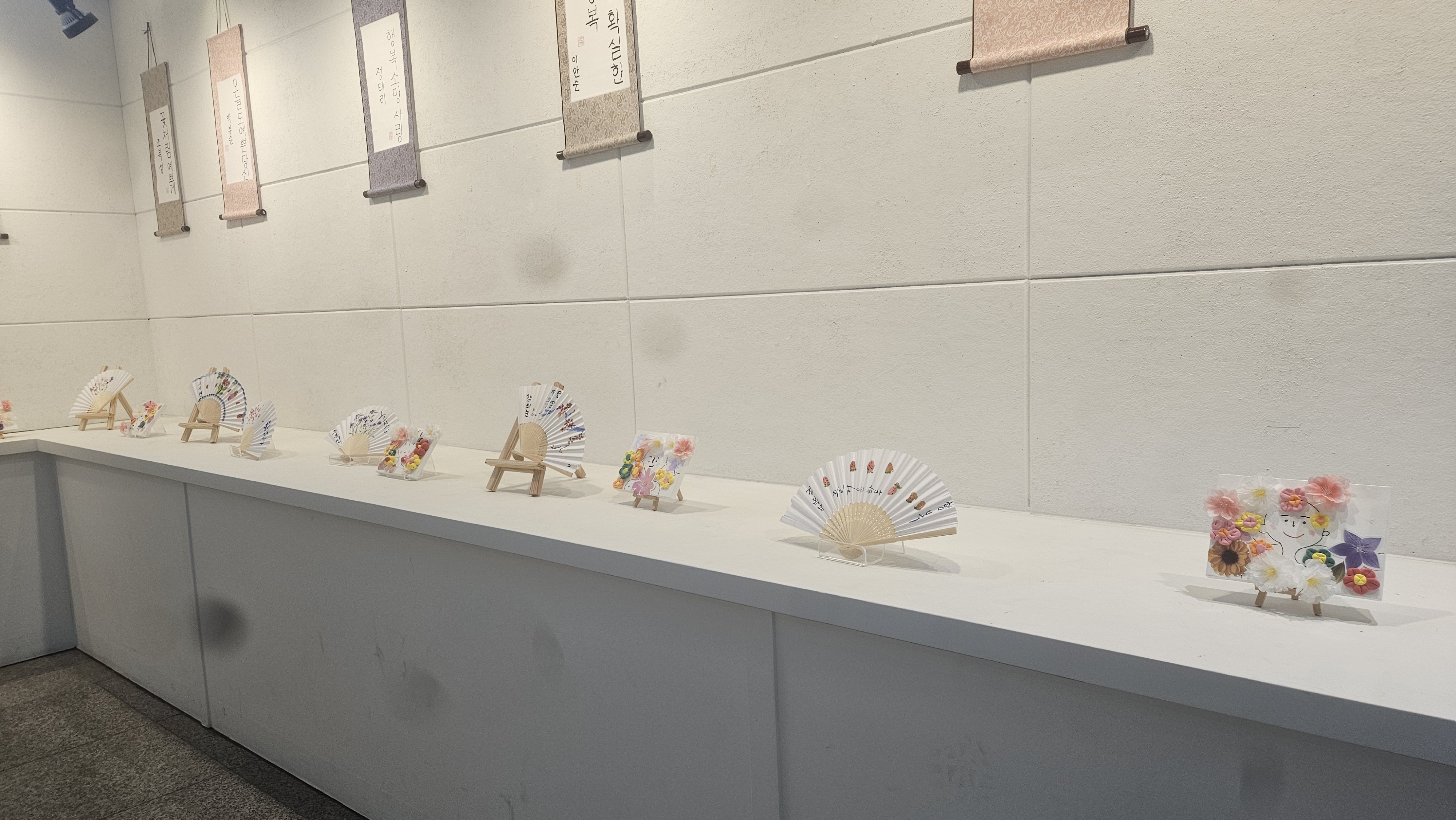 작은 전시 공간에 아이들이 만든 듯한 팝업북과 전통 부채, 캘리그라피 작품들이 전시되어 있었던 것이다.